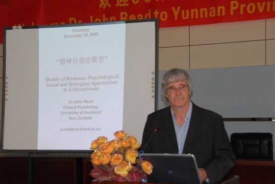 John .Read博士是新西蘭奧克蘭大學(xué)心理系教授,多年從事心理學(xué)研究工作,對(duì)精神分裂癥的發(fā)病機(jī)制有獨(dú)特見解,并著有《精神分裂癥模型》一書,被譯成中文、俄羅斯文、瑞典文、西班牙文等版本。以往人們更多的是從生物學(xué)的角度分析病因和治療精神分裂癥,John .Read博士認(rèn)為,更應(yīng)該重視心理社會(huì)因素對(duì)于疾病發(fā)生的影響機(jī)制,特別是注重兒童時(shí)期的遭遇、成長(zhǎng)環(huán)境和家庭教育與成年后精神分裂癥發(fā)生有著密切關(guān)系。來自云南省精神病醫(yī)院的70多名醫(yī)護(hù)人員參加了此次學(xué)習(xí),學(xué)習(xí)結(jié)束后醫(yī)務(wù)人員與John .Read博士進(jìn)行了熱烈的現(xiàn)場(chǎng)交流,均表示受益匪淺。
