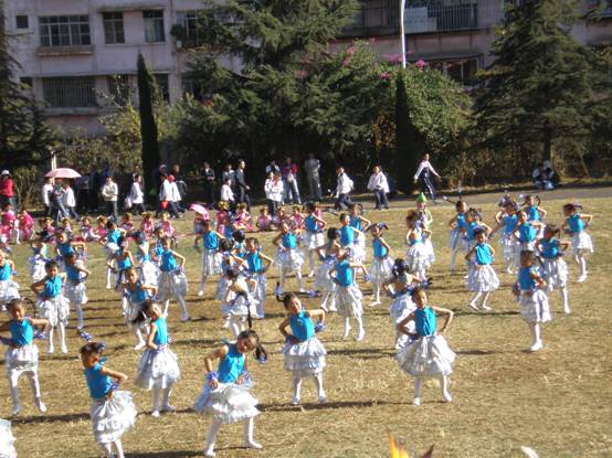 26日剛好是該校的冬運會開幕式,在開幕式上,連然小學1―6年級的學生表演了精彩的文藝表演。孩子們天真、活潑、可愛的表演贏得了陣陣的掌聲。開幕式結(jié)束后,中心專家將量表發(fā)到學校老師手中,并對教師進行了培訓。