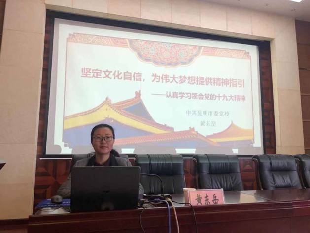 培訓(xùn)邀請(qǐng)了昆明市委黨校社會(huì)與文化教研部黃東岳老師作專(zhuān)題黨課,黃老師以《堅(jiān)定文化自信,建設(shè)文化強(qiáng)國(guó)》為題,解讀了我國(guó)新時(shí)代文化建設(shè)的基本方略和文化自信的基礎(chǔ)性地位,明確了創(chuàng)新是推動(dòng)新時(shí)代文化繁榮興盛的主線;接著深刻闡述了習(xí)近平文化自信思想的科學(xué)內(nèi)涵及其實(shí)踐價(jià)值,回答了文化自信是什么,文化自信從何而來(lái),為什么要堅(jiān)定文化自信及如何堅(jiān)定文化自信等基本問(wèn)題。對(duì)醫(yī)院的文化建設(shè)和黨建工作有十分重要的指導(dǎo)意義。