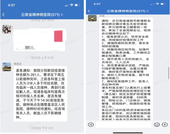 2021115日至今,醫(yī)院積極響應(yīng)政策號召,認(rèn)真落實(shí)國家衛(wèi)生健康委、云南省衛(wèi)生健康委、昆明市衛(wèi)生健康委《關(guān)于加快推進(jìn)衛(wèi)生健康系統(tǒng)新冠疫苗接種工作的通知》要求,全力抓好落實(shí)新冠疫苗接種工作。一是高度重視,充分認(rèn)識做好疫苗接種的重要意義。云南省精神病醫(yī)院積極進(jìn)行宣傳,要求全院黨員干部強(qiáng)化責(zé)任擔(dān)當(dāng),深刻理解加快推進(jìn)疫苗接種工作對維護(hù)人民群眾生命安全、身體健康和國家公共衛(wèi)生安全的特殊重要性,多次召開會議探討醫(yī)院職工疫苗接種計(jì)劃與時(shí)間安排;二是組織協(xié)調(diào),有序接種。2021115日,醫(yī)院黨政班子成員帶頭,優(yōu)先安排感染風(fēng)險(xiǎn)較高的人員順序梯次完成接種.截至2月中旬,我院共計(jì)完成264526針次接種。三是加快推進(jìn),確保應(yīng)接盡接。雖然云南省精神病醫(yī)院不是疫苗接種單位,但將進(jìn)一步強(qiáng)化組織領(lǐng)導(dǎo)、加大宣傳和服務(wù)保障力度,加快全院干部職工疫苗接種速度,堅(jiān)決落實(shí)疫苗接種工作舉措,確保應(yīng)接盡接,切實(shí)為疫情防控構(gòu)筑起有效的免疫屏障。目前,由于盤龍區(qū)人民醫(yī)院疫苗供應(yīng)不,醫(yī)院剩余361名職工未完成未接種工作,已全力與盤龍區(qū)人民醫(yī)院聯(lián)系,待疫苗到位,立即完成接種工作,為打贏疫情防控阻擊戰(zhàn)貢獻(xiàn)力量,保障全民健康安全。