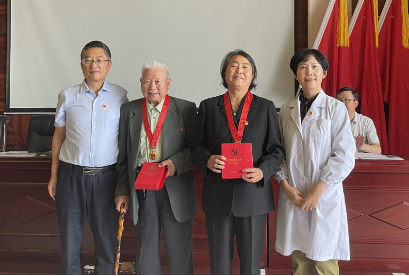覃書記、阮院長(zhǎng)向我院光榮在黨五十周年老同志頒發(fā)紀(jì)念章