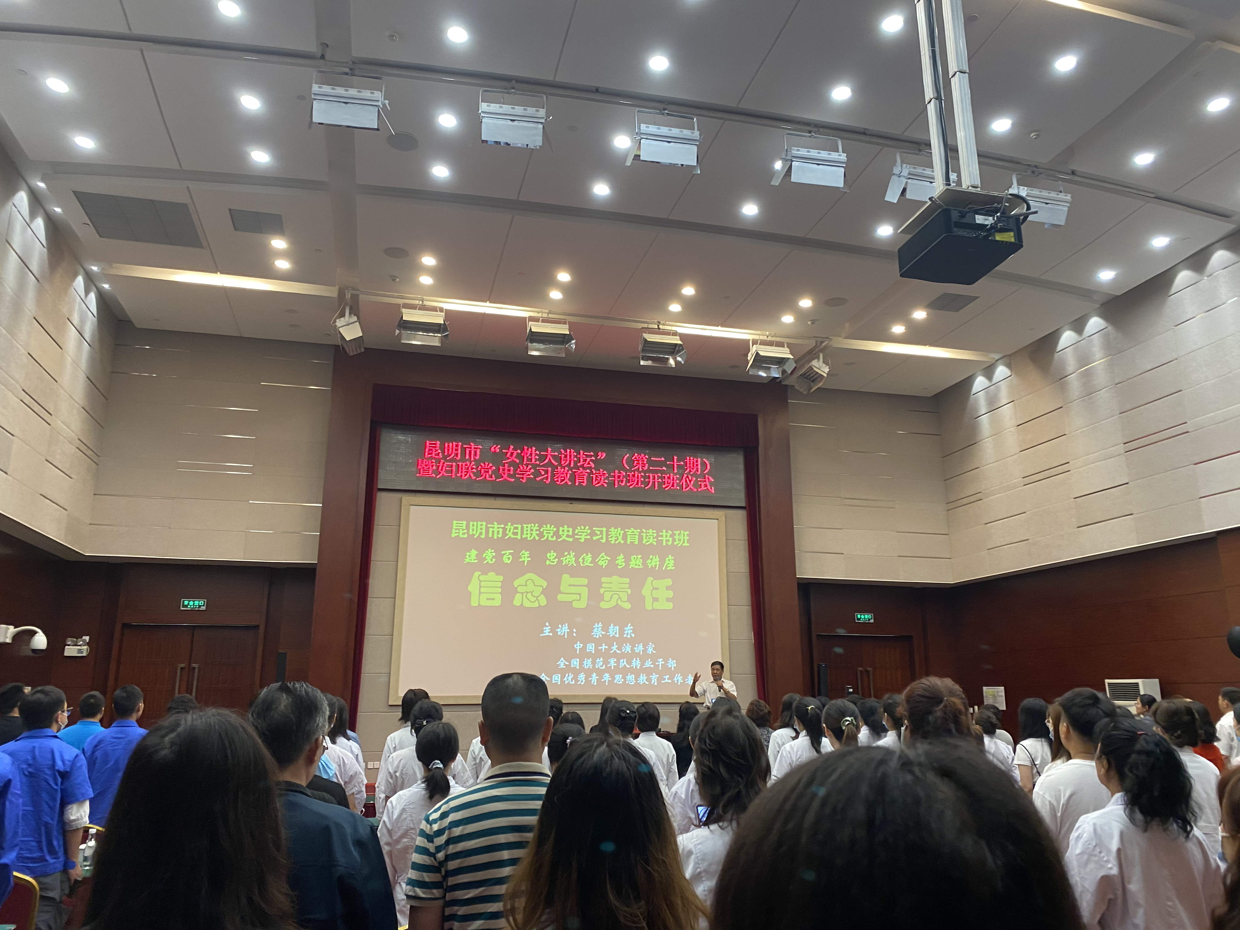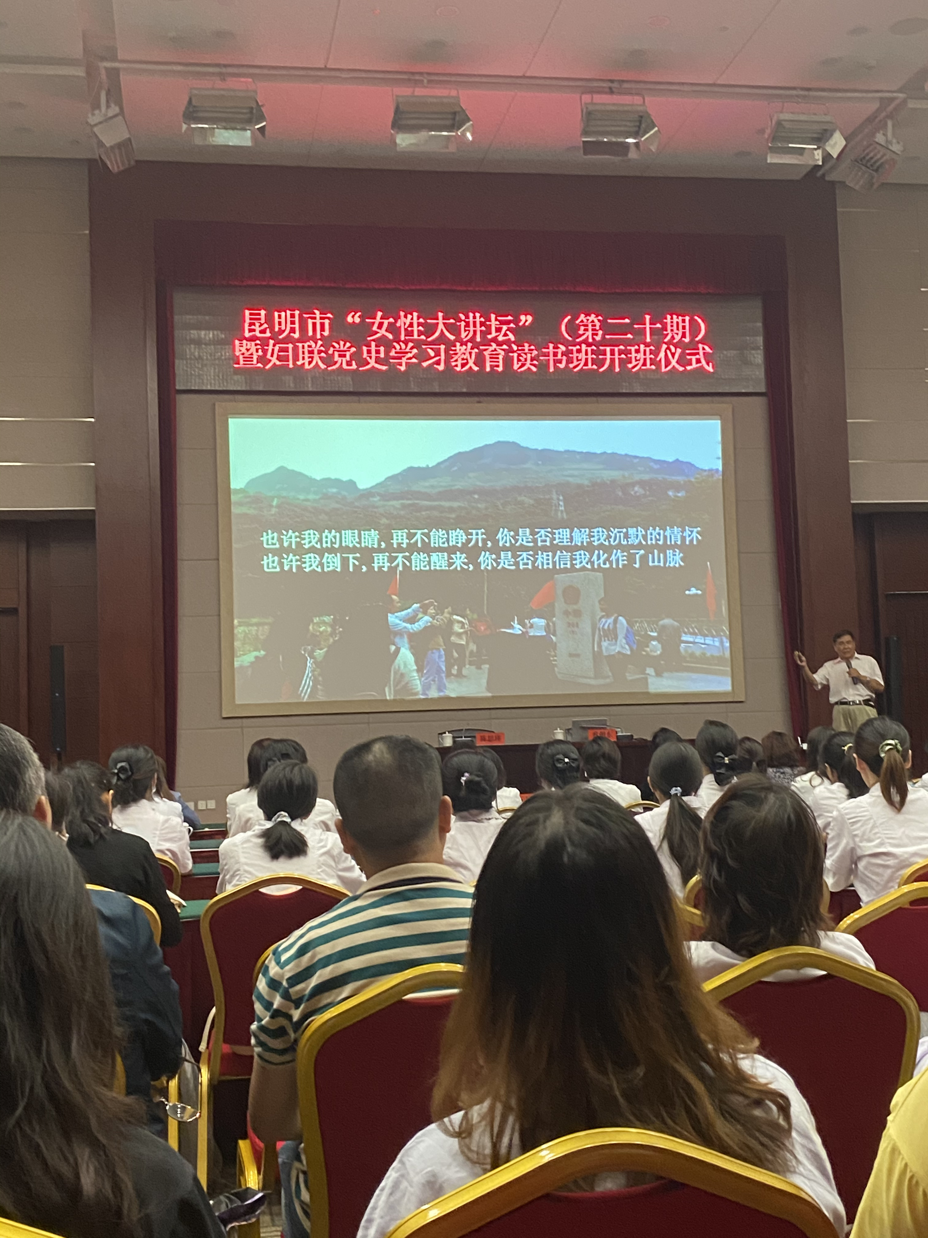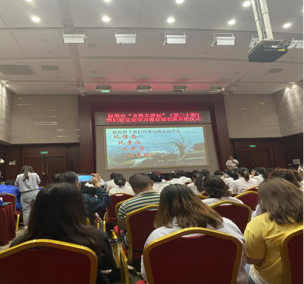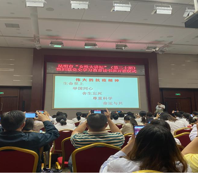 為隆重紀(jì)念中國共產(chǎn)黨建黨 100 周年,創(chuàng)新黨史學(xué)習(xí)教育活動(dòng),推動(dòng)?jì)D聯(lián)黨史學(xué)習(xí)教育活動(dòng)深入人心,更加堅(jiān)定婦女群眾聽黨話、跟黨走的理想信念,婦聯(lián)于6月30日在昆明會(huì)堂舉辦了昆明市“女性大講壇”婦聯(lián)“黨史”學(xué)習(xí)教育讀書班開班儀式,邀請了“中國十大演講家”蔡朝東老師以 “信念與責(zé)任”為題為大家進(jìn)行授課。我院派出了楊飏、雷杰鵬、趙海雷、李識昆、楊春霞五名女職工參會(huì)。