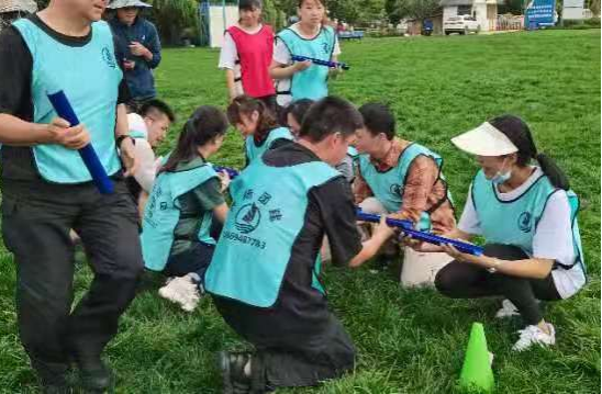 熱身運(yùn)動后,在拓展教練引導(dǎo)下開展了“同心鼓”、“愛心傳遞”、“珠行萬里”、“極速60秒”、“無敵風(fēng)火輪”等頗具趣味的拓展活動。面對一個個富有挑戰(zhàn)、寓意深刻的環(huán)節(jié),各組的黨員教師們集思廣益、齊心協(xié)力,每一位隊員都相互提醒、相互攙扶、相互鼓勵,充分調(diào)動了拓展活動的氣氛,打破了團(tuán)隊間的隔閡,建立起彼此的信任感。
