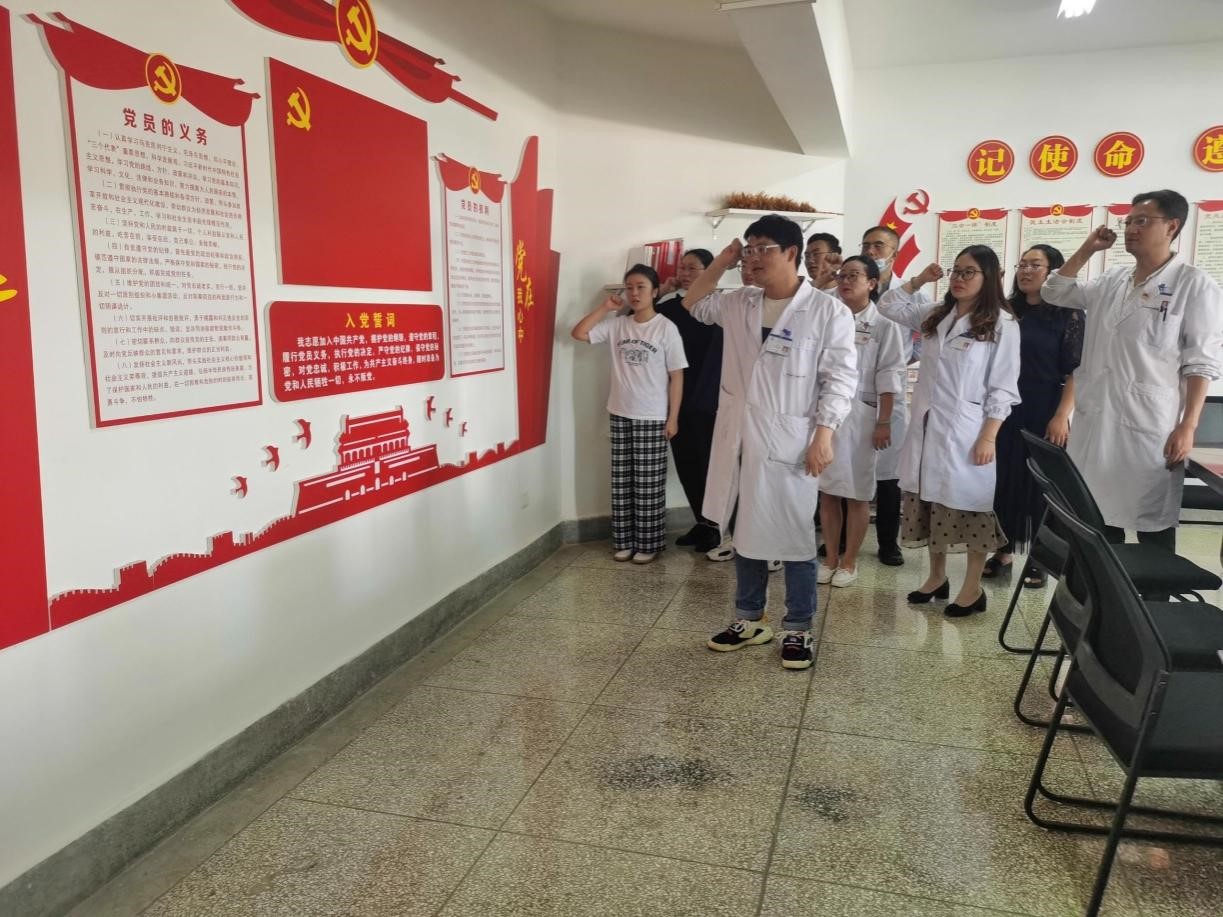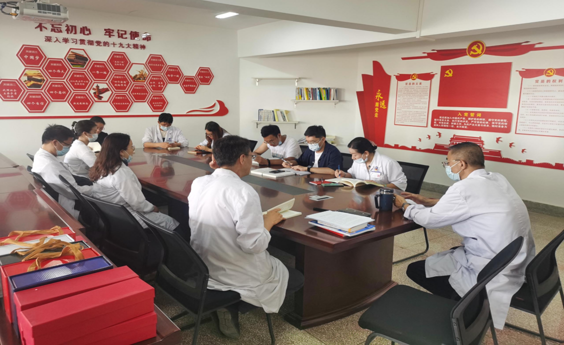 活動(dòng)按主題黨日活動(dòng)的程序依次進(jìn)行,王永江同志帶領(lǐng)全體黨員同志重溫入黨誓詞。宣誓是一種形式,更是一種激勵(lì),一種鞭策,一種對(duì)信仰的強(qiáng)化,它帶給黨員同志的震撼已遠(yuǎn)遠(yuǎn)超過(guò)誓詞本身這短短的幾句話。緊接著為本月過(guò)政治生日的來(lái)立中同志送上精致的的政治生日賀卡。保持和院黨委政治學(xué)習(xí)內(nèi)容一致,本次主題黨日還學(xué)習(xí)了《關(guān)于印發(fā)公立醫(yī)院高質(zhì)量發(fā)展促進(jìn)行動(dòng)(2021--2025)的通知》、《中國(guó)共產(chǎn)黨統(tǒng)一戰(zhàn)線工作條例》以及《習(xí)近平關(guān)于堅(jiān)持和完善黨和國(guó)家監(jiān)督體系論述摘編》第三節(jié),在開(kāi)展完主題黨日的“5”項(xiàng)內(nèi)容后,我們的“X”——“爭(zhēng)當(dāng)排頭兵”系列活動(dòng)之三:8·19醫(yī)師節(jié)病歷書(shū)寫(xiě)大比拼也開(kāi)始現(xiàn)場(chǎng)評(píng)比。