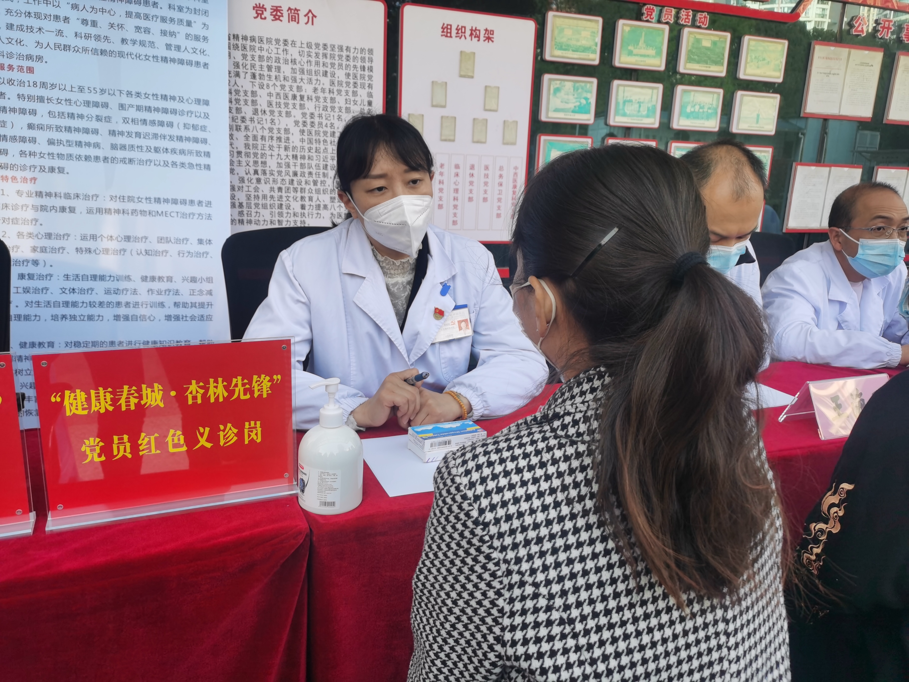 本次活動在云南省精神病醫(yī)院院黨委的大力支持下,由中西醫(yī)結(jié)合女性精神酒依賴黨支部組織,女性精神醫(yī)學(xué)科主辦?;顒蝇F(xiàn)場,由女性精神醫(yī)學(xué)科主任張躍坤、副主任王海明帶領(lǐng)的專家團隊為患者義診。并開通開單拿藥的綠色通道,由專人指引,患者無需支付掛號費用,付藥費就能直接拿藥,流程更加便捷。現(xiàn)場還提供測量體重、血壓、脈搏等免費健康體檢服務(wù),并通過發(fā)放科普資料、為患者答疑解惑等方式,開展女性心理健康知識宣教。