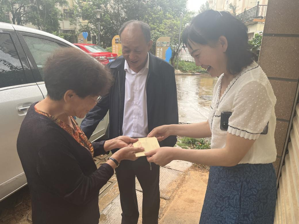 “最近身體怎么樣?”“家里都還好嗎?”慰問(wèn)組親切地與老黨員拉起家常,詳細(xì)詢(xún)問(wèn)他們的家庭情況、身體狀況,傾聽(tīng)他們講述曾經(jīng)建設(shè)醫(yī)院的經(jīng)歷和奮斗歷程,叮囑他們一定要保重身體,保持積極樂(lè)觀的心態(tài),繼續(xù)發(fā)揮銀發(fā)黨員的先鋒模范作用。臨走時(shí),覃東明同志不忘叮囑老同志們多保重,如遇困難,及時(shí)向組織反映,醫(yī)院將力所能及地提供幫助,同時(shí)也祝愿他們的日子越過(guò)越好。