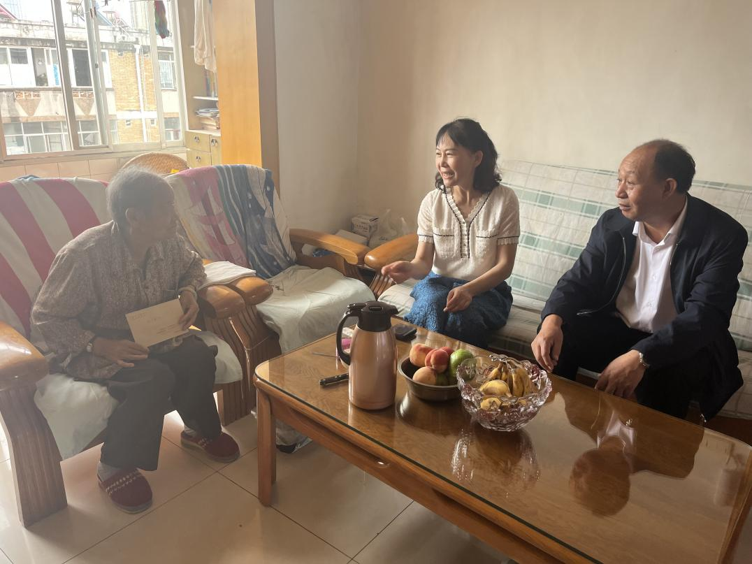 在中國(guó)共產(chǎn)黨成立102周年之際,為進(jìn)一步加強(qiáng)黨內(nèi)關(guān)懷,傳遞組織溫暖,2023年7月4日院黨委書(shū)記覃東明同志帶領(lǐng)黨辦、老干辦工作人員一行對(duì)醫(yī)院高齡黨員進(jìn)行走訪慰問(wèn),向他們送去節(jié)日問(wèn)候和誠(chéng)摯的祝福。