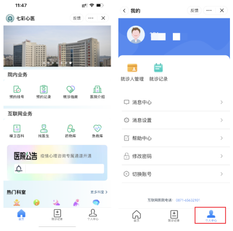進(jìn)入小程序主頁——選擇“個(gè)人中心”——“就診人管理”——“新建就診人”,若是微信七彩心醫(yī)已建過就診人,這里就不需要重復(fù)建啦,它會(huì)自動(dòng)同步的。