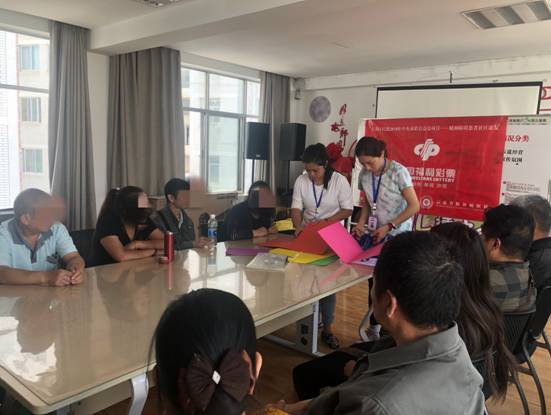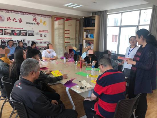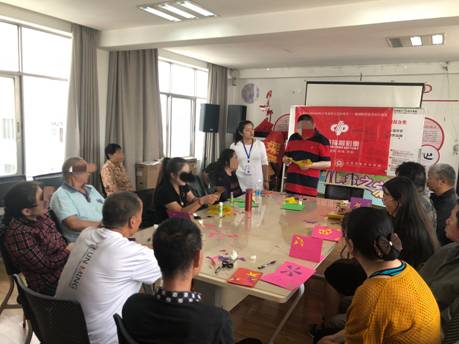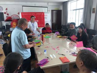 2019年9月18日下午,由云南省精神病醫(yī)院派出康復治療師朱裴佳、李本清、譚澍三人組成精神康復治療小組,到佴家灣社區(qū)對參加精神障礙社區(qū)康復項目的患者及家屬進行了社交技能訓練及藝術治療。今天的訓練有14戶精神障礙患者家庭到場參加了活動。