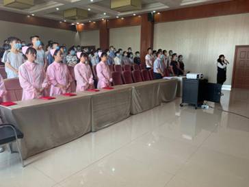 “勿為有損之事,勿取服或故用有害之藥。盡力提高護理之標(biāo)準(zhǔn),慎守病人家務(wù)及秘密。竭誠協(xié)助醫(yī)生之診治,務(wù)謀病者之福利?!睍h開始,護理部副主任馬潤娟帶領(lǐng)所有護理同仁重溫了南丁格爾誓言,在鏗鏘有力的誓詞下面,讓大家感受到了200多年前護理前輩們創(chuàng)辦護理事業(yè)的初心。
