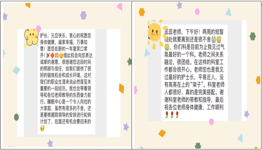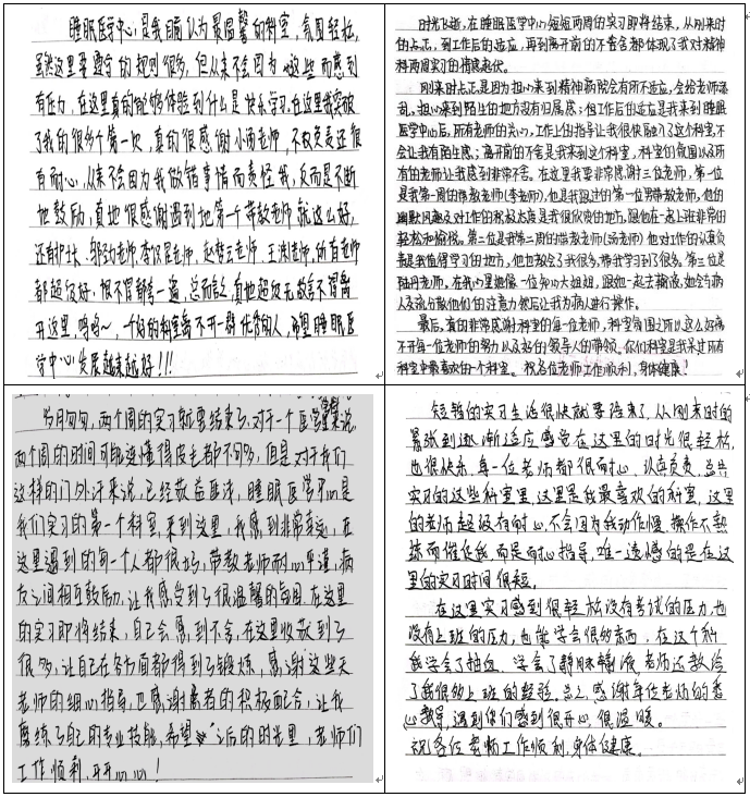 云南省精神病醫(yī)院睡眠醫(yī)學(xué)中心一直致力于“醫(yī)教協(xié)同,教學(xué)相長”,以獨特教學(xué)方法和臨床實踐特色為學(xué)生提供一個高質(zhì)量的學(xué)習(xí)平臺。近日,科室收到了一封封充滿真情實感的感謝信。寫信學(xué)生們紛紛表示,這段時間在睡眠醫(yī)學(xué)中心的學(xué)習(xí)和實踐經(jīng)歷對他們的成長意義重大,不僅學(xué)到了寶貴的專業(yè)知識,更在科室內(nèi)感受到了如家般的溫暖。他們對未來發(fā)展充滿信心,也對科室的帶教工作表示由衷的感謝。