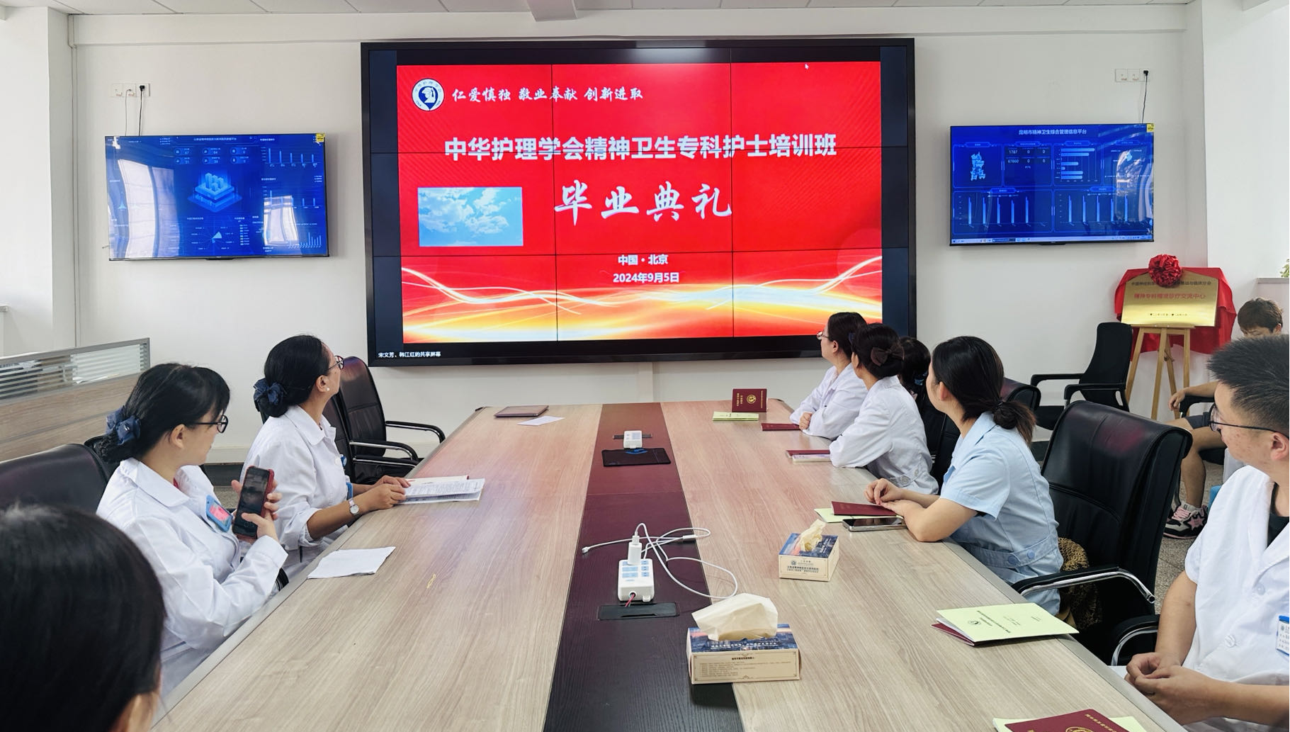 經(jīng)歷了四周的培訓(xùn),在9月5日上午,護(hù)理部組織學(xué)員及帶教科室參加了中華護(hù)理學(xué)會(huì)精神衛(wèi)生??谱o(hù)士畢業(yè)典禮及座談會(huì)。中華護(hù)理學(xué)會(huì)給予全國22家基地單位充分的肯定與感謝,并在會(huì)議中表彰了優(yōu)秀學(xué)員,給予精神衛(wèi)生護(hù)士榜樣的力量。