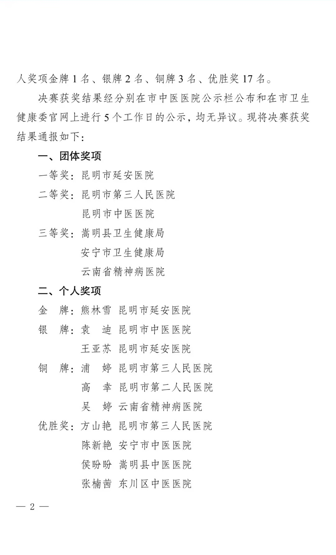 2024年9月13日,在由昆明市衛(wèi)生健康委員會(huì)、昆明市總工會(huì)、昆明市人力資源和社會(huì)保障局主辦的“昆明市2024年職工職業(yè)技能競(jìng)賽中醫(yī)護(hù)理技能決賽”中,我院中西醫(yī)科青年護(hù)士吳婷、孟威兩位同志憑借他們出色的中醫(yī)護(hù)理素養(yǎng)和精彩的護(hù)理操作技術(shù)在決賽中脫穎而出,斬獲此次大賽團(tuán)體三等獎(jiǎng)!吳婷獲個(gè)人獎(jiǎng)項(xiàng)銅牌!