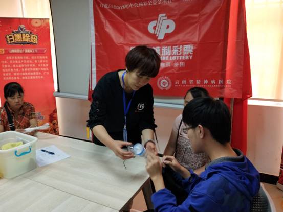 按照既定工作計(jì)劃,2019年81日下午,由云南省精神病醫(yī)院派出康復(fù)治療師王琦珠、嚴(yán)梅、鄧瓊英、譚澍、朱澤坤5人組成本次精神康復(fù)治療小組,到太和街道和平路社區(qū)對(duì)參加精神障礙社區(qū)康復(fù)項(xiàng)目的患者及家屬進(jìn)行了日常生活能力訓(xùn)練和音樂治療的活動(dòng)。太和街道辦事處和平路社區(qū)、黃家莊社區(qū)、前衛(wèi)路社區(qū)、雙龍橋社區(qū)15戶精神病殘疾家庭參與了本次活動(dòng)。