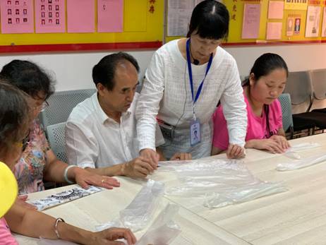 活動(dòng)前王老師就通知大家?guī)еS身衣物、塑料袋等小物件來參加活動(dòng)。今天的內(nèi)容就是教會(huì)大家利用礦泉水瓶來收納塑料袋的方法,每個(gè)人在折疊塑料袋的同時(shí),也鍛煉了自己的大腦靈活性,讓自己集中精力跟隨王老師一起把一個(gè)個(gè)塑料袋折疊好并連接在一起,放進(jìn)礦泉水瓶子里,再把礦泉水瓶掛起來,這樣用的時(shí)候就可以一個(gè)一個(gè)地把塑料袋抽出來。之后王老師有教大家巧妙地折疊毛衣、長(zhǎng)褲等,衣物的收納整理也是家庭收納很重要的一部分,我們經(jīng)常隔一段時(shí)間就要整理衣柜,一拿衣服就會(huì)把整個(gè)衣柜弄亂,王老師今天教我們疊衣服的方法就是為了避免拿一件衣服整個(gè)衣柜就要重新整理。這些的生活小竅門可以幫助大家學(xué)會(huì)整理,重拾對(duì)生活的信心,避免懶惰,在家無事可做,把家里每個(gè)角落收拾干凈,自己心情也會(huì)變得好起來。