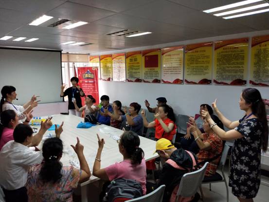 一去二三里,煙村四五家。亭臺(tái)六七座,八九十枝花。”每一個(gè)人都非常積極地參與進(jìn)來,在學(xué)習(xí)和賞析古詩詞的同時(shí),王老師教大家通過手勢(shì)舞的動(dòng)作比劃并詮釋了這首詩。邊朗誦邊手勢(shì)舞,每個(gè)人都集中注意力,生怕自己跟不上節(jié)奏,這樣的方式不僅幫助患者們鍛煉左右腦的協(xié)調(diào)功能,同時(shí)也能幫助患者們建立了信心