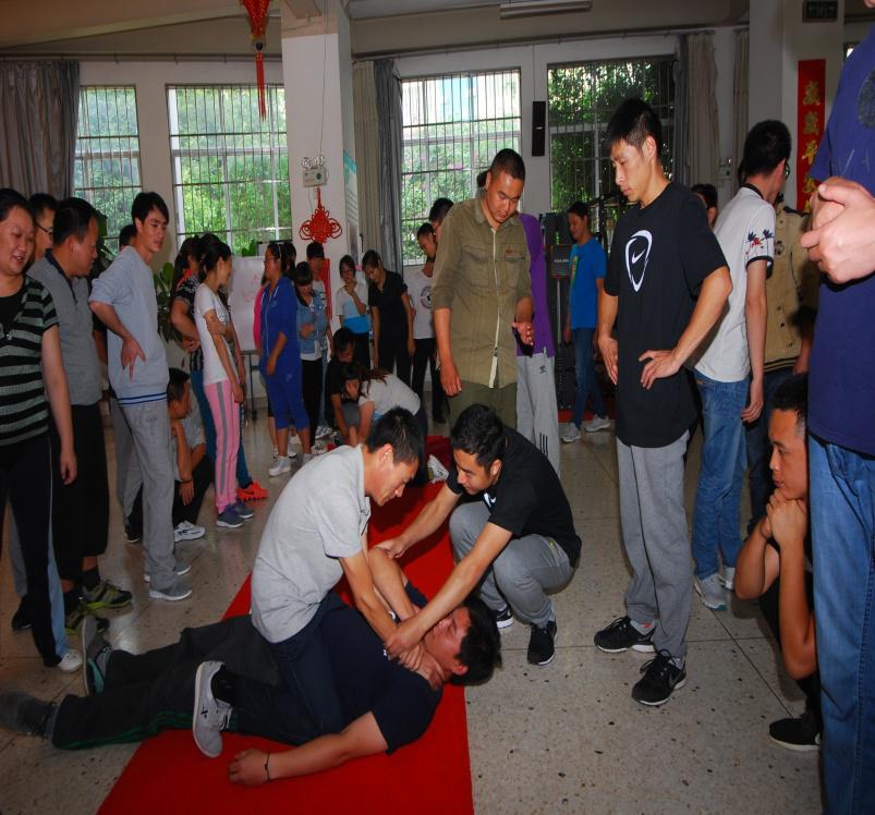理論課程涵蓋了醫(yī)療機構的權利義務,醫(yī)患矛盾緩解及心理調適,心智的健康模式等內容,在醫(yī)護維權、工作壓力的緩解等方面給出了一些專業(yè)指導意見及方法,實訓課是此次培訓的最大亮點,省精神病醫(yī)院防傷醫(yī)暴力處置小組就擺脫暴力束縛脫身法:勒脖子、揪頭發(fā)、抓手腕、熊抱等從環(huán)境的評估、距離的評估、撤退路線的尋找、解脫技巧做了詳細的培訓,特警周教官及其三名同事的授課內容是兇器襲擊防范與自救技巧,為期兩天的實訓課,學員們著休閑衣褲,運動鞋,學習興趣高漲,每一個動作及技巧都做到親自模擬體驗學習,培訓時間短但有成效。