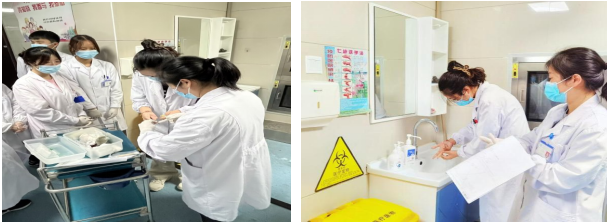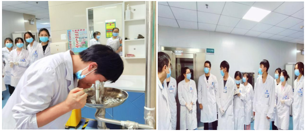 隨即啟動(dòng)《實(shí)驗(yàn)室生物安全事故應(yīng)急預(yù)案》,演練人員穿戴防護(hù)裝備進(jìn)行相應(yīng)的處置操作和匯報(bào)流程。血清溢灑為實(shí)驗(yàn)室內(nèi)常見突發(fā)事件,在處理時(shí)需注意污染區(qū)覆蓋范圍、優(yōu)氯凈的濃度配制、消毒面積、消毒作用時(shí)間及醫(yī)廢處理等。