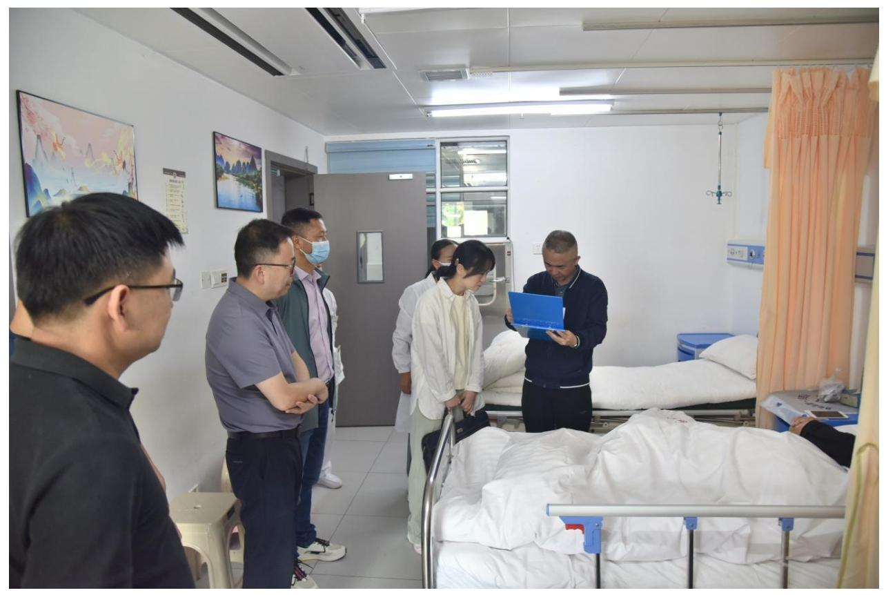 儀式結(jié)束后,我院陳旭副院長及張勇輝、王維等專家立即開展實地工作:一方面深入尋甸縣第一人民醫(yī)院精神科病房,針對疑難病例進行現(xiàn)場會診指導(dǎo),提出個性化診療建議;另一方面仔細檢查住院病房布局、安全防護設(shè)施及醫(yī)療設(shè)備配置情況,結(jié)合省級診療規(guī)范與基層實際需求,現(xiàn)場反饋整改意見,為后續(xù)工作站高效運轉(zhuǎn)筑牢硬件與技術(shù)基礎(chǔ)。