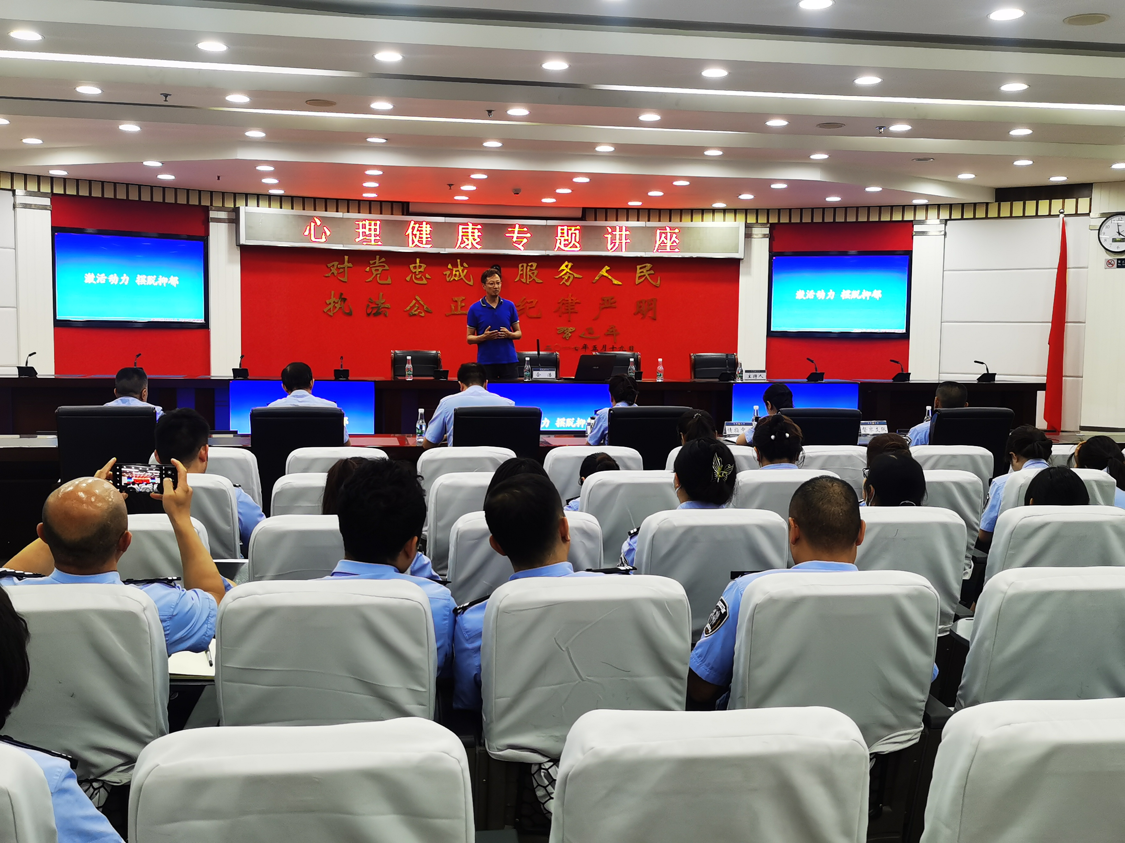 云南省精神病醫(yī)院、昆明市心理救援隊(duì)專家督導(dǎo)、唐巖主任醫(yī)師,講授了題為“職業(yè)壓力與對(duì)策”的專題講座,通過(guò)幽默詼諧的方式向全市公安民警呈現(xiàn)了警察這支特殊隊(duì)伍的職業(yè)壓力及其相應(yīng)的處理應(yīng)對(duì)方式,并現(xiàn)場(chǎng)帶領(lǐng)聽(tīng)課的公安民警進(jìn)行身體放松訓(xùn)練,讓學(xué)員切身感受到心理調(diào)節(jié)方法對(duì)自身壓力的釋放作用。