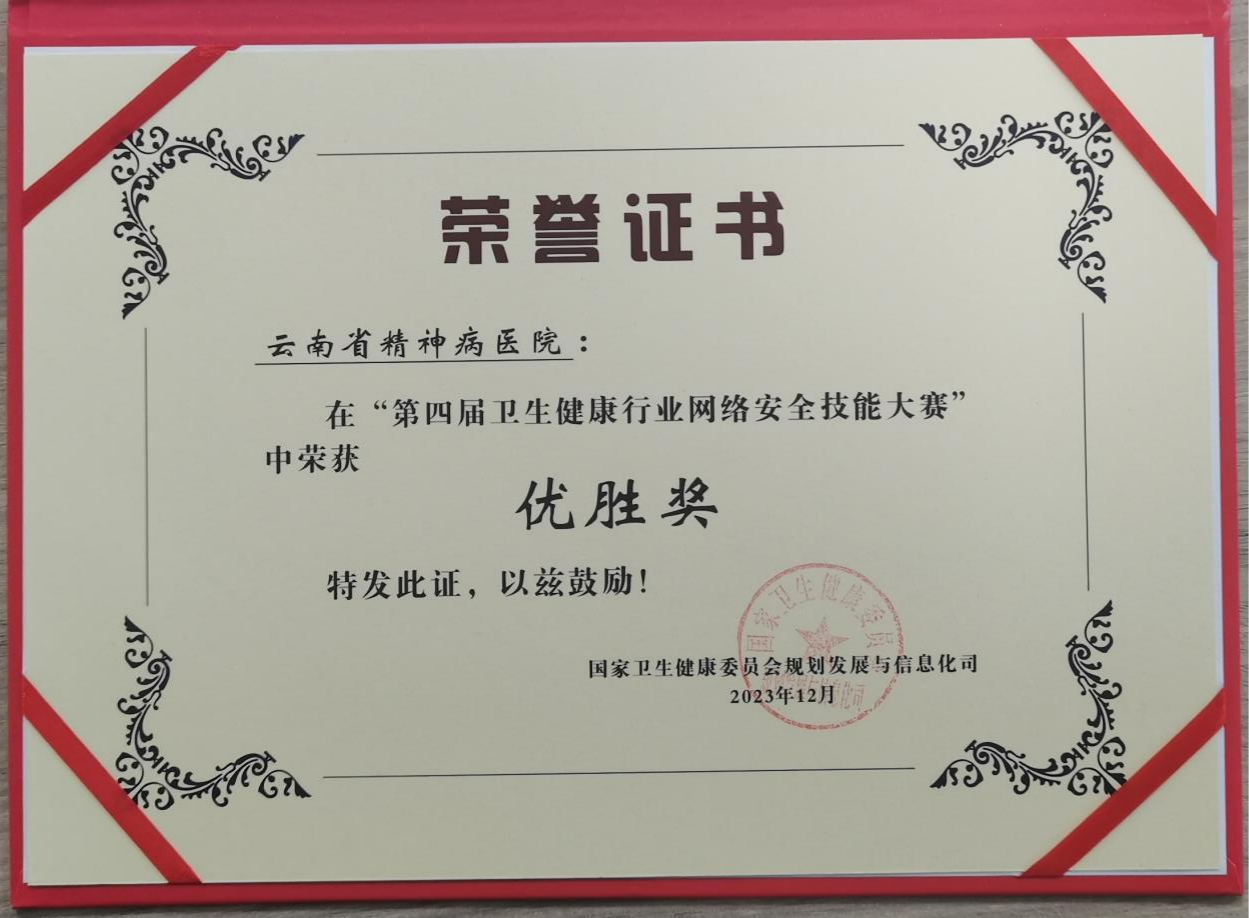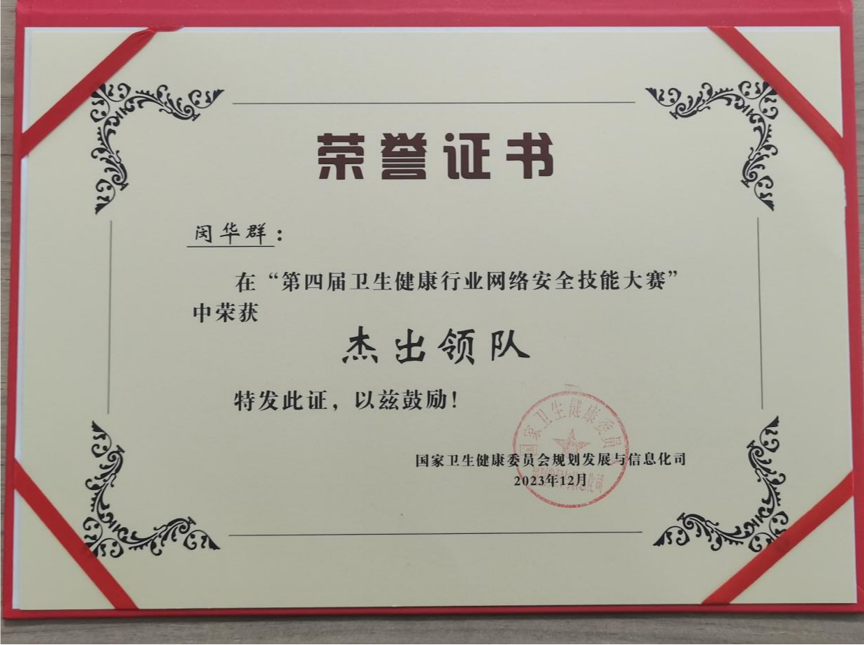 第四屆衛(wèi)生健康行業(yè)網(wǎng)絡(luò)安全技能大賽并獲得優(yōu)勝獎