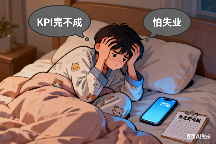 凌晨兩點,盯著天花板翻來覆去,腦子里像有個不停轉(zhuǎn)的陀螺:“這個月的KPI完不成怎么辦?”“同齡人都升職了,我是不是太沒用了?”“萬一以后失業(yè),我能靠什么生活?”