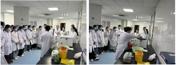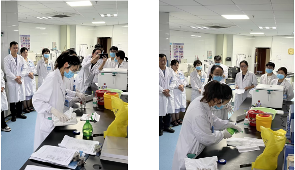 為加強(qiáng)實(shí)驗(yàn)室安全管理工作,提升實(shí)驗(yàn)室工作人員專業(yè)素質(zhì),有效預(yù)防、快速應(yīng)對、及時控制實(shí)驗(yàn)室安全事件,提高現(xiàn)場處置突發(fā)事件的能力和水平,2024621日下午,醫(yī)學(xué)檢驗(yàn)科開展了實(shí)驗(yàn)室安全應(yīng)急演練(共計(jì)七個模擬場景),此次演練由醫(yī)學(xué)檢驗(yàn)科生物安全負(fù)責(zé)人張少川制定預(yù)案并現(xiàn)場指揮,各專業(yè)組負(fù)責(zé)場景布置及項(xiàng)目場景演示,全體檢驗(yàn)科工作人員及實(shí)習(xí)同學(xué)參加演練,科室全體人員共計(jì)15人和實(shí)習(xí)同學(xué)20人共計(jì)35人,除正常休息人員2人,應(yīng)參加35人,實(shí)到33人,參加率為94.30%
