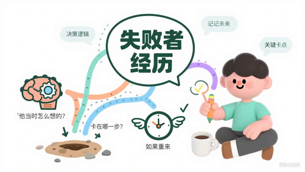 比起成功者的“道理總結(jié)”,失敗者的“經(jīng)歷細節(jié)”反而更有價值——因為他們不用“維護成功形象”,說的都是沒被包裝過的“真實困境”。