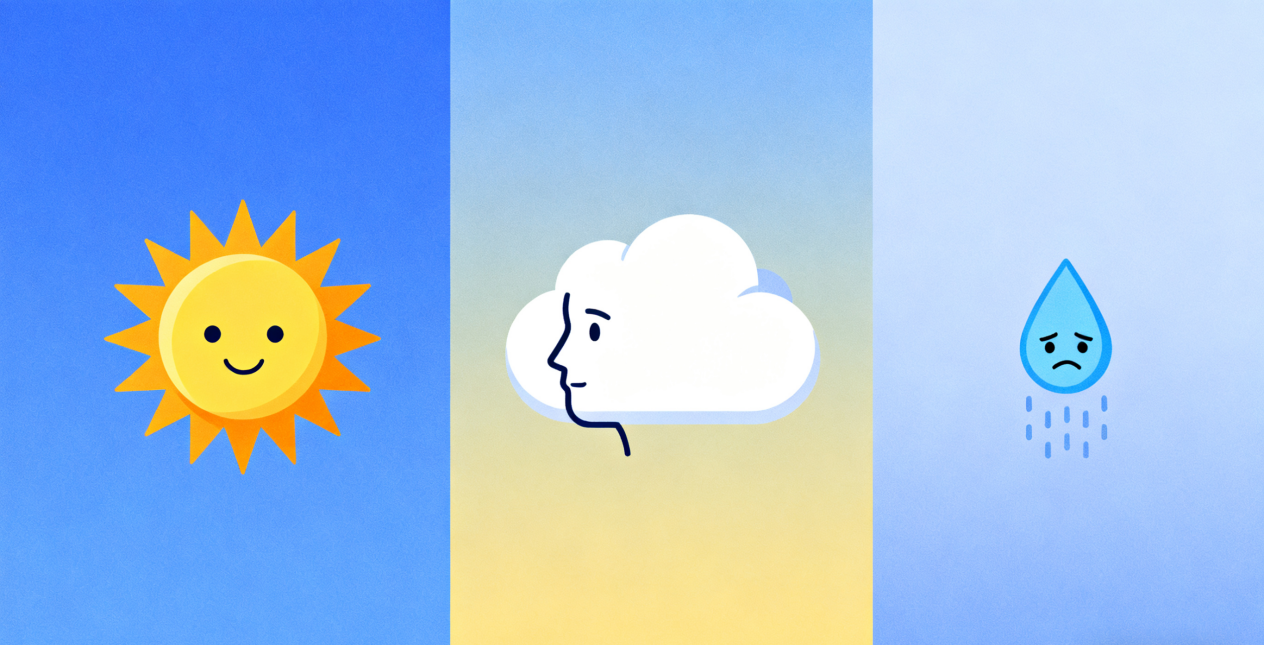 情緒不是 “洪水猛獸”,而是我們身體自帶的 “信號(hào)儀”,就像自然界的天氣:有時(shí)晴空萬(wàn)里(開心、平靜),有時(shí)陰雨綿綿(難過(guò)、低落),偶爾還會(huì)下雷陣雨(憤怒、焦慮)。這些都是正常的生理反應(yīng) —— 比如吃到喜歡的食物會(huì)開心,趕不上地鐵會(huì)煩躁,擔(dān)心家人健康會(huì)焦慮,這些情緒的存在,恰恰說(shuō)明我們?cè)谡J(rèn)真感知生活。情緒本身沒有“好”與“壞”:開心能幫我們記住美好,焦慮能提醒我們“提前準(zhǔn)備”,憤怒能讓我們意識(shí)到“邊界被侵犯”。真正讓我們困擾的,從來(lái)不是情緒本身,而是“不知道怎么應(yīng)對(duì)情緒” 的無(wú)力感。