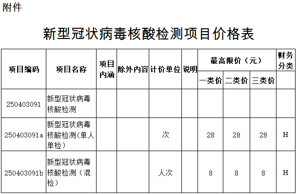 附件:新型冠狀病毒核酸檢測項(xiàng)目價格