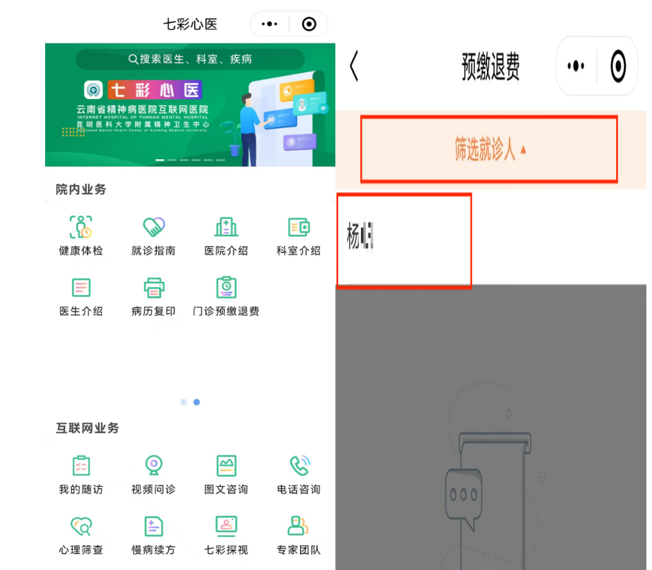 2、選擇“門診預(yù)繳退費(fèi)”,篩選就診人