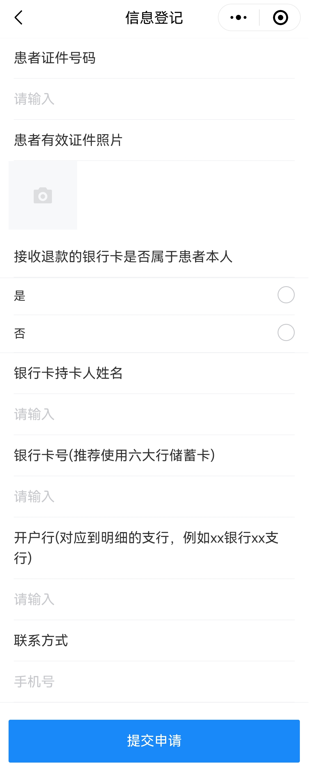 若您的門診就診賬戶中尚有預(yù)交金余額,因特殊原因您無(wú)法親自前往醫(yī)院辦理門診預(yù)交金退款手續(xù),自7月1日起可通過(guò)我院微信小程序“七彩心醫(yī)”進(jìn)行線上申請(qǐng)。您只需在小程序內(nèi)提供患者身份證照片、收款銀行卡賬號(hào)、戶名、開(kāi)戶行名稱及聯(lián)系電話,醫(yī)院財(cái)務(wù)部在收到申請(qǐng)后,會(huì)盡快進(jìn)行審核。審核通過(guò)后剩余的門診預(yù)交金將退款至您指定的銀行賬戶上。