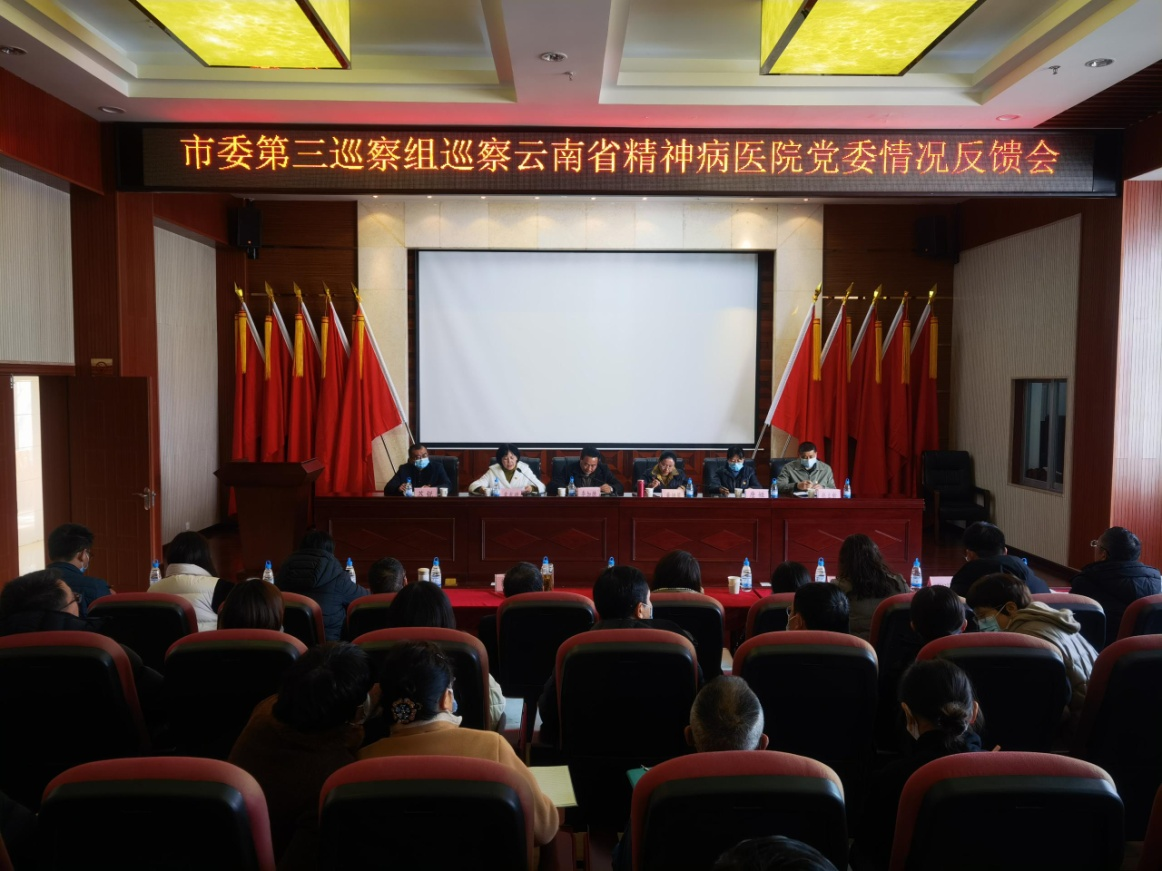 根據(jù)市委統(tǒng)一安排,2022年1月21日,市委第三巡察組向云南省精神病醫(yī)院黨委反饋了巡察情況。會前,市委第三巡察組組長李加德向云南省精神病醫(yī)院黨委書記覃東明移交了巡察反饋意見。會上,李加德向云南省精神病醫(yī)院黨委領(lǐng)導(dǎo)班子反饋了巡察情況;市委巡察辦副主任唐婭傳達了省委常委、市委書記劉洪建在聽取十二屆市委第一輪巡察情況匯報時的講話要求;市衛(wèi)生健康委黨委委員、副主任普婭馨提整改要求。云南省精神病醫(yī)院黨委書記覃東明主持反饋會議并作表態(tài)講話。