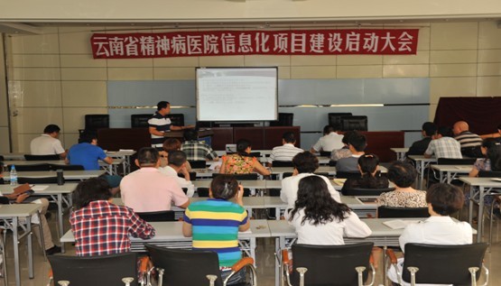 為了更好的實施HIS系統(tǒng)項目,確保HIS系統(tǒng)在我院順利運行,滿足臨床業(yè)務的需要和三級精神病醫(yī)院評審細則的要求。2013年5月29日上午9時,在醫(yī)院食堂二樓會議室組織召開了醫(yī)院信息化項目建設啟動動員大會,全院各科室主任、護士長50余人參加了會議,會議由院長、黨委書記書記楊家義同志主持。