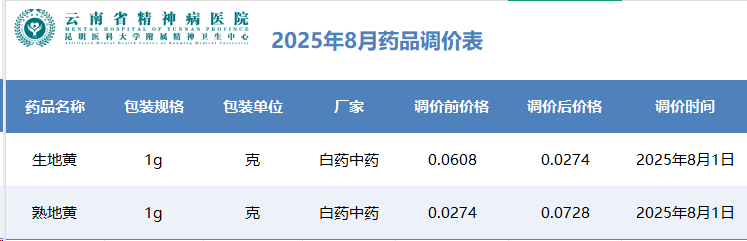 2025年8月藥品調(diào)價表