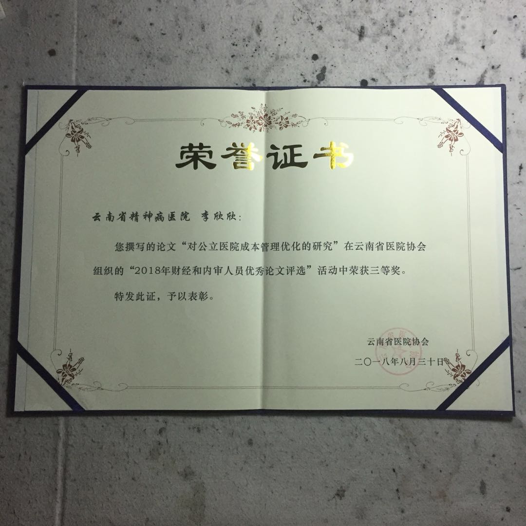 我科室主辦會計李欣欣同志的論文《對公立醫(yī)院成本管理優(yōu)化的研究》獲得了三等獎。李欣欣同志堅持寫作,把工作中的所思、所想和問題進行總結(jié)、分析、研究,挖掘新方法、提出新觀點、開拓新思維,并與醫(yī)院實際情況相結(jié)合,為促進醫(yī)院經(jīng)濟管理的規(guī)范化和精細化建設(shè),勇于承擔(dān)起提升醫(yī)院經(jīng)濟管理水平的責(zé)任,也共同為云南省醫(yī)院財經(jīng)內(nèi)審事業(yè)的發(fā)展進步做出積極的努力!