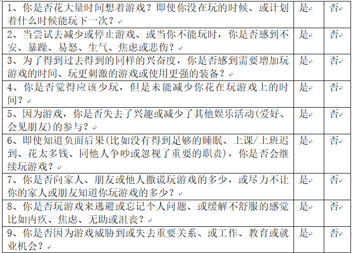 如果是經(jīng)常玩游戲,我們也可以使用美國(guó)精神病協(xié)會(huì)推薦的網(wǎng)游網(wǎng)絡(luò)成癮診斷的9條標(biāo)準(zhǔn)來(lái)判斷。
