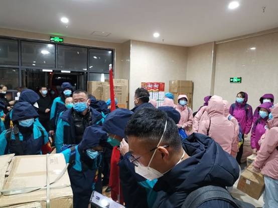 由于此次出征時間緊急,駐地在晚上10時才接到我們要臨時入住的通知,就這樣我們住進(jìn)了臨時改造的宿舍。窗外的漆黑映出了隊員們臉上的疲憊,作為云南第四批院志湖北醫(yī)療隊里幾名少數(shù)的年輕男同志,我們主動協(xié)助加入到行李物資的搬運(yùn)中。