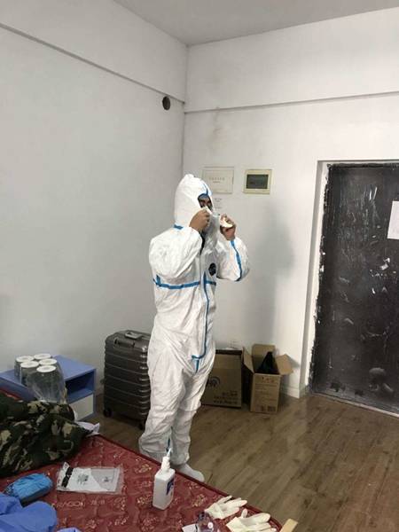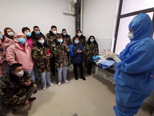 2月17日早上,全隊就進(jìn)入了緊張的培訓(xùn)備戰(zhàn)狀態(tài)。為確保各項工作落實,在省衛(wèi)健委張麗萍的帶領(lǐng)下,我們對當(dāng)前的工作有了全面的了解,完成了全隊人員醫(yī)護(hù)管理、后勤物資保障、信息宣傳的分工,并嚴(yán)格進(jìn)行穿脫防護(hù)服的培訓(xùn)。在此時,嚴(yán)格標(biāo)準(zhǔn)操作就是對自己生命安全的負(fù)責(zé),培訓(xùn)結(jié)束后,我們5人又互相監(jiān)督練習(xí)防護(hù)服的穿脫。