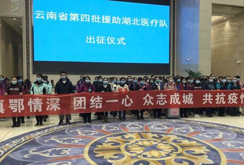 第四批醫(yī)療隊是由部分省級醫(yī)院、昆明各縣(區(qū))醫(yī)院及云南省精神病醫(yī)院組成,從通知到出發(fā),準(zhǔn)備時間不足8小時。在醫(yī)院、省市為我們隆重舉辦的出征儀式后,我們第四批云南援助湖北醫(yī)療隊一行102人浩浩蕩蕩出發(fā)了。