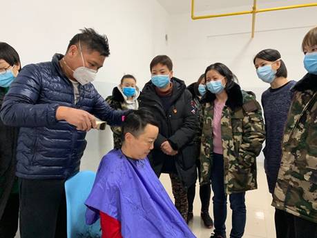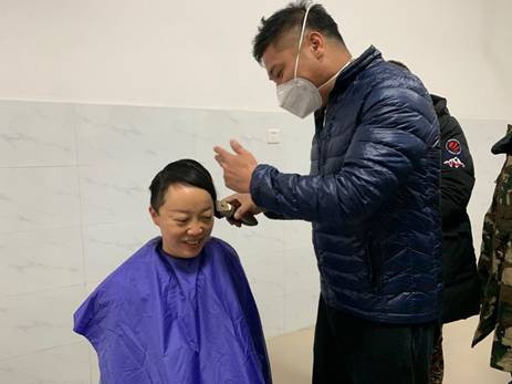 當(dāng)我得知這一消息時,知道自己的第一件事情來了,剪頭發(fā),那不是我擅長的事情嘛,在病房里,很多病人的頭發(fā)都是我修剪的,而且出發(fā)前,醫(yī)院的幾位戰(zhàn)友的頭發(fā)不也是我剪的嗎。于是,我找到云南省第四批援助湖北醫(yī)療隊領(lǐng)隊張麗萍處長,主動申請承擔(dān)理發(fā)志愿者服務(wù)工作。