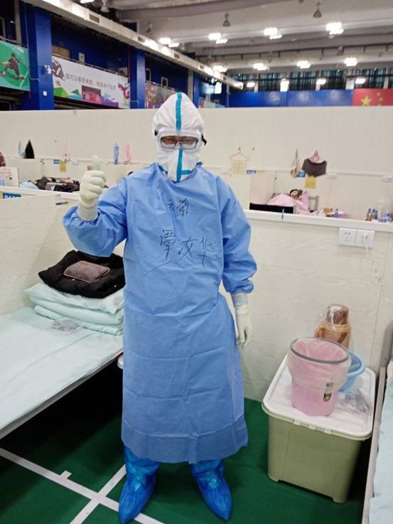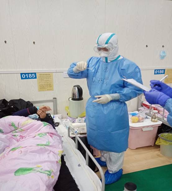 到達(dá)武漢后,他和戰(zhàn)友們一起在漢陽體校方艙醫(yī)院一線工作,除了一般的護(hù)理常規(guī),還主動承擔(dān)護(hù)理小組核酸標(biāo)本采集、帶病人CT檢查等特殊治療,還充分發(fā)揮自己精神科護(hù)理特長,為患者提供專業(yè)的心理護(hù)理,緩解他們的緊張焦慮,增強(qiáng)他們戰(zhàn)勝病魔的信心。