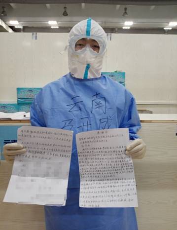 云南省精神病醫(yī)院康復(fù)科一區(qū)的副護(hù)士長, 此次新冠疫情發(fā)生后,譚汝華同志主動書寫請戰(zhàn)書,他說:“黨員干部,要覺悟更高、做得更好、事事帶頭、時(shí)時(shí)爭先,做出黨員干部的樣子,干出先鋒模范的行動,展現(xiàn)先鋒戰(zhàn)士的作風(fēng)?!蔽覀冮e聊時(shí)他說到平時(shí)看武俠小說特別崇拜里面的俠客,所謂俠客就是有武藝、講義氣、肯舍己助人的人,這次我也可以貢獻(xiàn)自己的綿薄之力化身“俠客”啦。接到上級領(lǐng)導(dǎo)馳援武漢的緊急電話,譚汝華同志放下手中的工作,回家簡單的整理用物后,飛快到達(dá)醫(yī)院集合點(diǎn),出發(fā)去機(jī)場,與其他醫(yī)院的戰(zhàn)士們匯合。出發(fā)前他說:“希望等我們歸來,我們可以摘下口罩,看見彼此的微笑”。