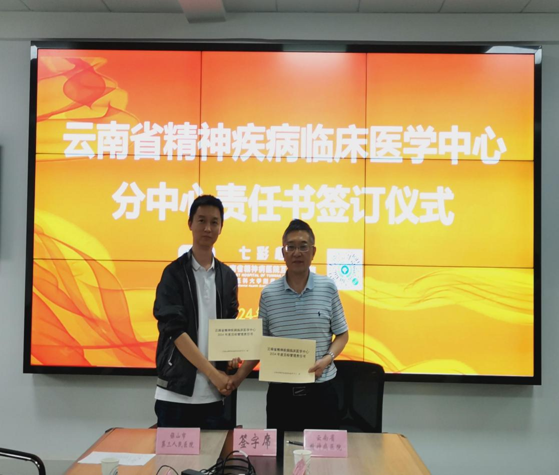最后,阮冶院長與臨滄市精神病??漆t(yī)院、昭通市精神衛(wèi)生中心、保山市第三人民醫(yī)院三個分中心分別簽訂責任書。