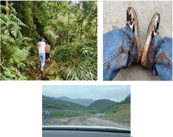 由于地理位置及氣候的特殊性,村鎮(zhèn)距離縣城較遠,大多為狹窄的盤山、臨水、臨崖公路,且農戶大多數(shù)居住于山腰之上,戶與戶之間都需要翻越山頭,部分道路彎曲泥濘,車輛無法駛入,只能通過步行走訪。尤其在此次評估期間,威信縣多為陰雨天氣,陰冷潮濕,為入戶工作帶來了很大的挑戰(zhàn),無論是滑倒、暈車、車陷泥潭,還是淋雨、感冒,甚至疼到要吃布洛芬止痛,都沒能阻擋云南省精神病醫(yī)院精神障礙患者綜合評估支援工作小組5名醫(yī)師堅定的步伐,他們努力克服重重困難,哪怕每天走到雙腿發(fā)抖,依然堅持起早入山,認真完成入戶篩查評估。