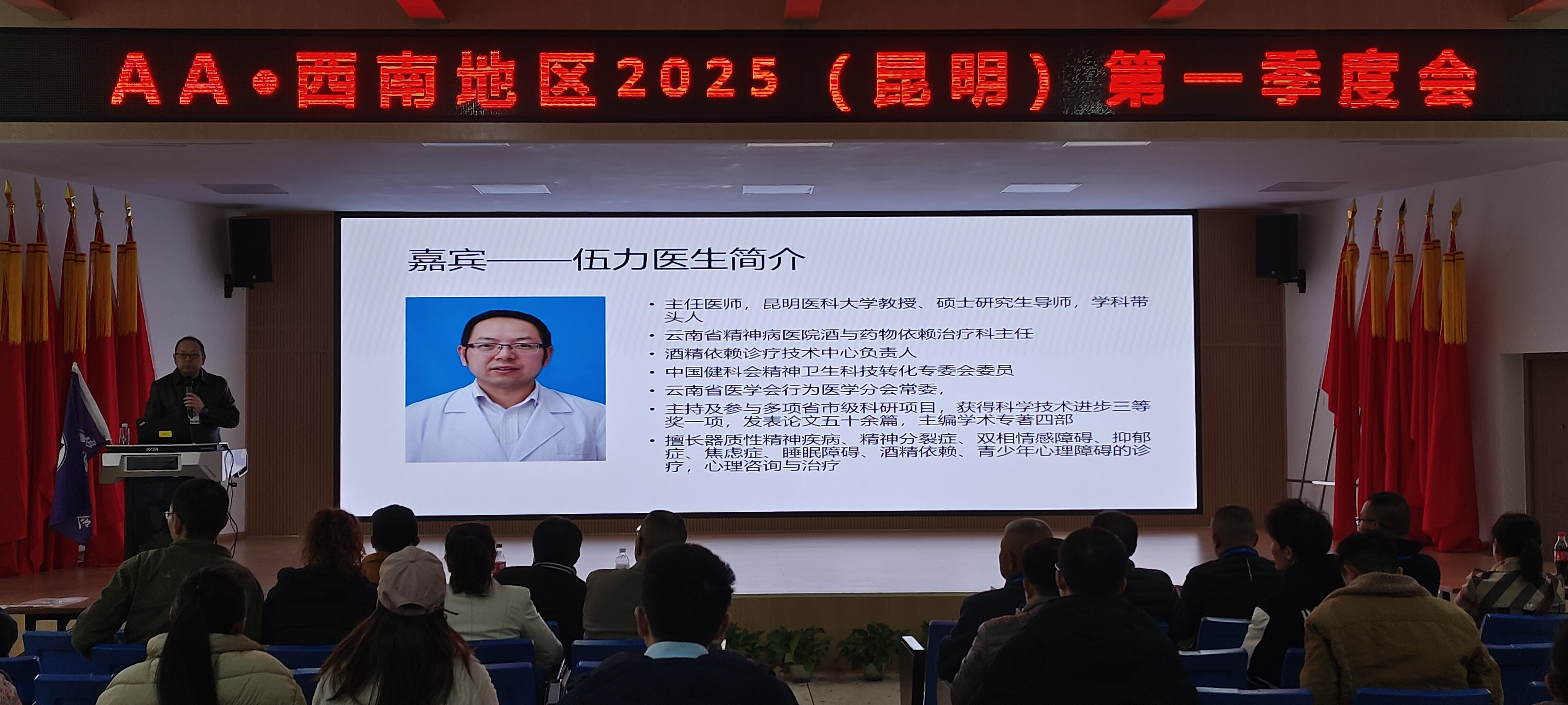 與此同時(shí),我科室專(zhuān)業(yè)人員為會(huì)議提供了科學(xué)的理論指導(dǎo)與專(zhuān)業(yè)建議,助力參會(huì)人員更好地理解成癮機(jī)制以及保持清醒的方法。會(huì)議期間,科室主任伍力針對(duì)成癮問(wèn)題做了專(zhuān)業(yè)的學(xué)術(shù)演講??剖易o(hù)士長(zhǎng)訾永鵬,護(hù)理師何志芳也積極參與了會(huì)議進(jìn)程協(xié)助工作。
