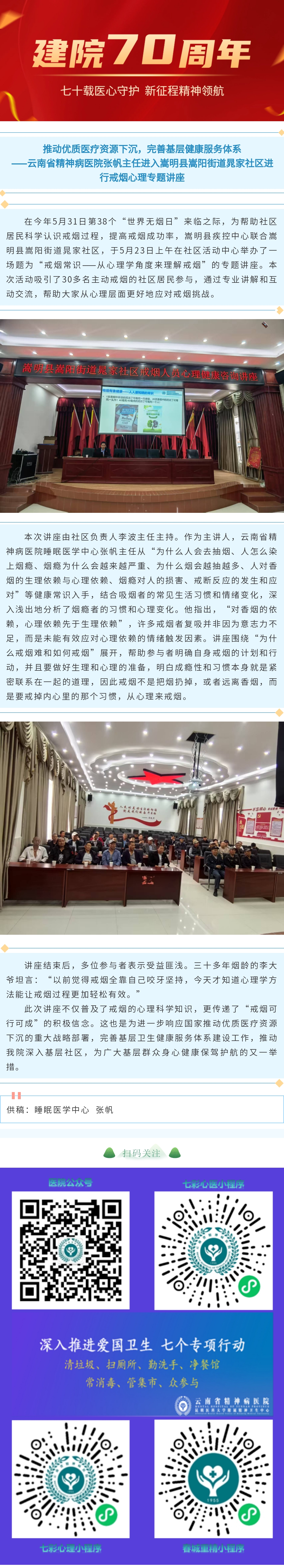 推動優(yōu)質(zhì)醫(yī)療資源下沉,完善基層健康服務(wù)體系 ——云南省精神病醫(yī)院張帆主任進入嵩明縣嵩陽街道晁家社區(qū)進行戒煙心理專題講座