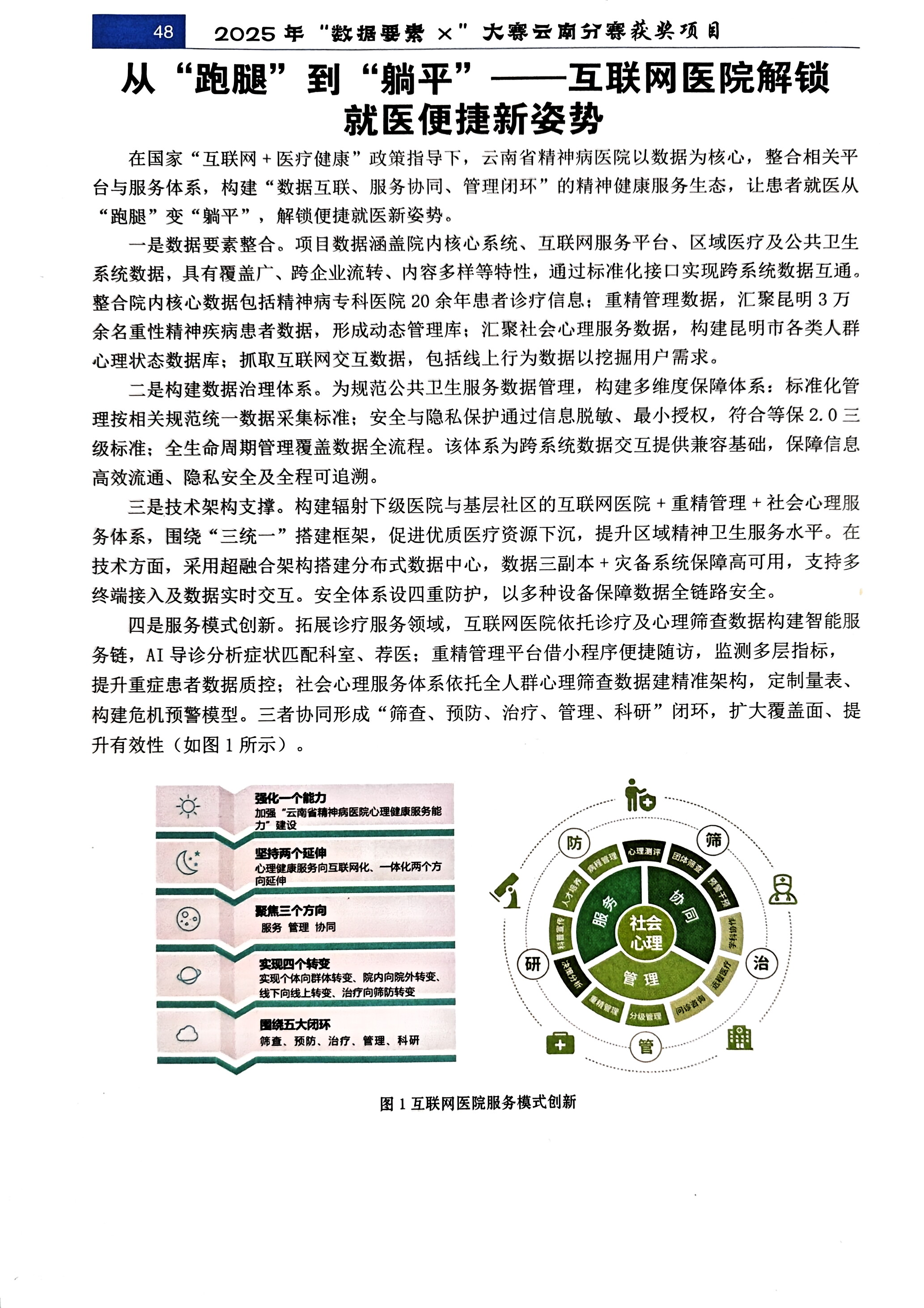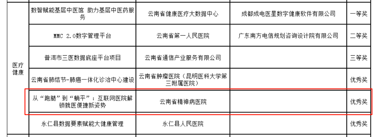 云南省精神病醫(yī)院申報(bào)的“從‘跑腿’到‘躺平’:互聯(lián)網(wǎng)醫(yī)院解鎖就醫(yī)便捷新姿勢(shì)”項(xiàng)目,在醫(yī)療健康領(lǐng)域“提升醫(yī)療服務(wù)便捷性”賽道中脫穎而出,榮獲“優(yōu)秀獎(jiǎng)”。