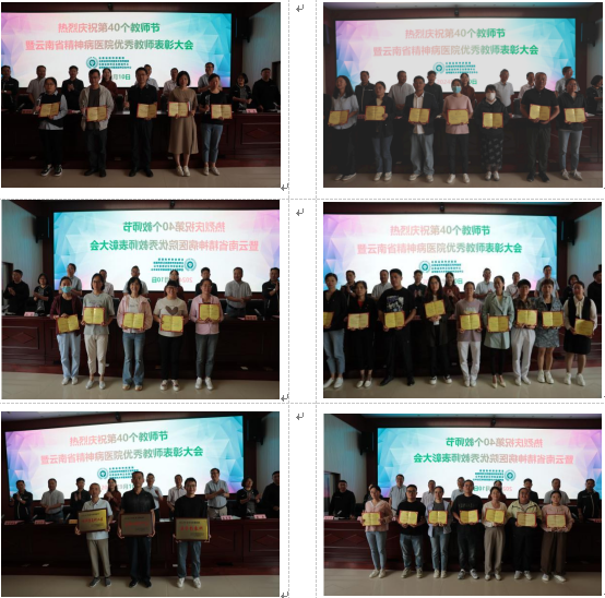 在金秋送爽、碩果累累的季節(jié)里,云南省精神病醫(yī)院于9月10日上午隆重舉行了第40個教師節(jié)暨優(yōu)秀師生表彰大會。此次活動不僅表達(dá)了對辛勤耕耘在教育一線的教師們的崇高敬意,更是全面總結(jié)和表彰了過去一年里我院在教學(xué)、科研、醫(yī)療等方面取得的成績。