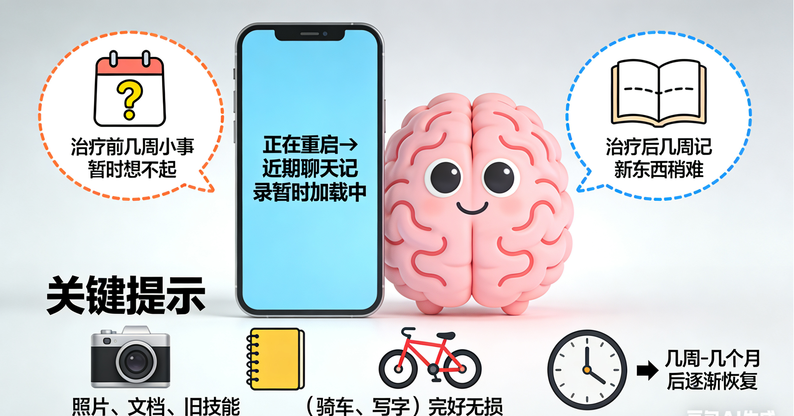 關(guān)鍵點(diǎn)在于: 這些記憶影響絕大多數(shù)是暫時(shí)的、可逆的。就像手機(jī)重啟后,正在運(yùn)行的某些應(yīng)用數(shù)據(jù)可能暫時(shí)丟失,但系統(tǒng)本身和存儲(chǔ)的照片、文檔都完好無損。記憶通常會(huì)在治療結(jié)束后幾周至幾個(gè)月內(nèi)逐漸恢復(fù)。